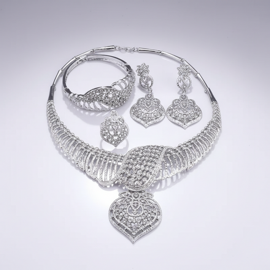 Extravagant Rhinestone & Silver Tone Jewelry Set (Copy)