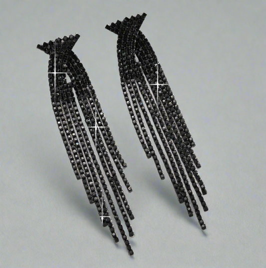 Black Art Deco Tassel Earrings