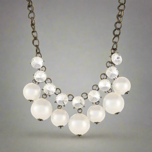 Pearl Rhinestone Flexible 2 Row Bracelet