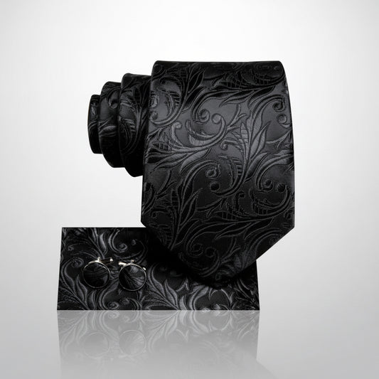 Black Scroll Necktie Set