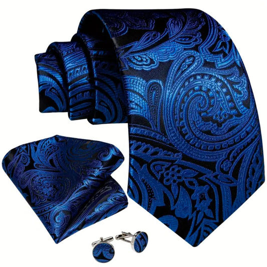 Blue Black Paisley Necktie Set