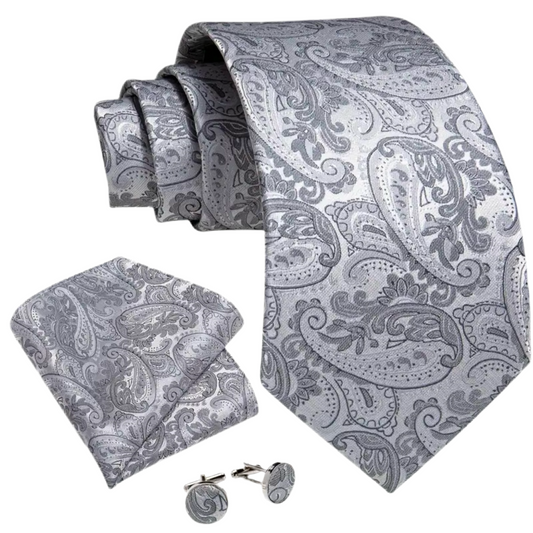 Grey Paisley Necktie Set