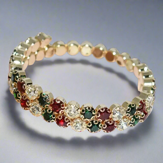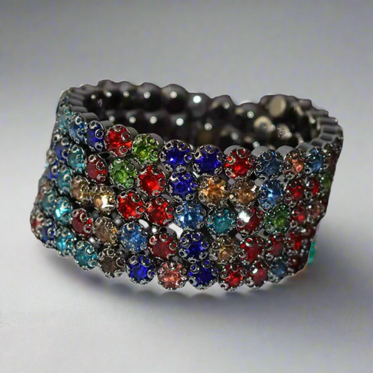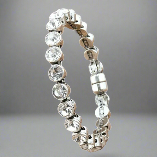 Flexible 5 Row Rhinestone Bracelets-Silver Setting