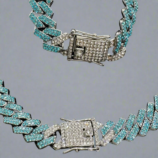 Aqua/Silver Cuban Chain Set
