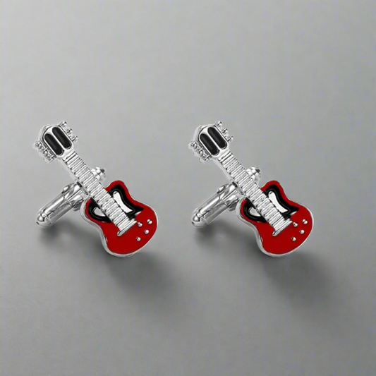 Guitar Cufflinks in Red