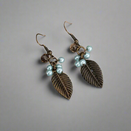 Bronze Leaf Pearl Dangle Earrings
