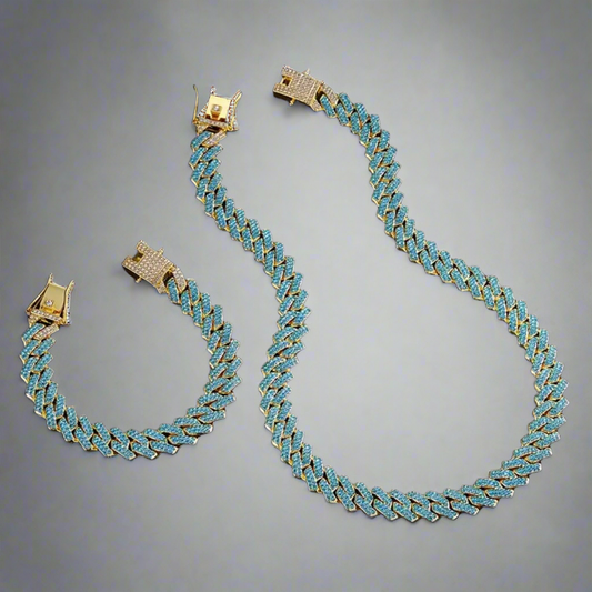 Gold Aqua Cuban Chain Set