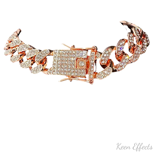 Rose Gold Clear Cuban Chain Set