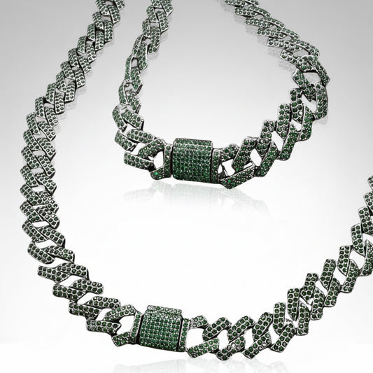 Green Black Cuban Chain Set
