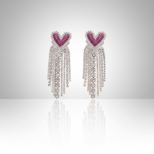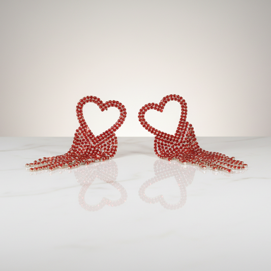 Red Heart Tassel Earrings