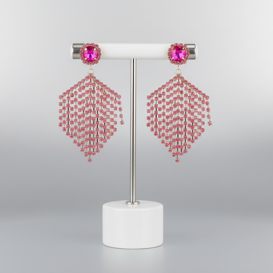 Rose Red Pink Tassel Earrings