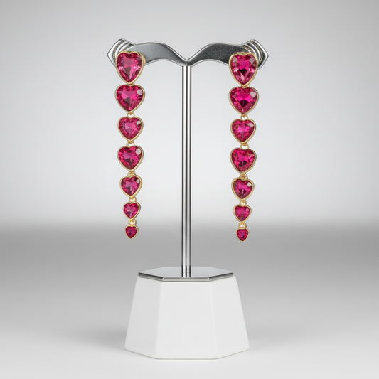 Pink Heart Tassel Earrings