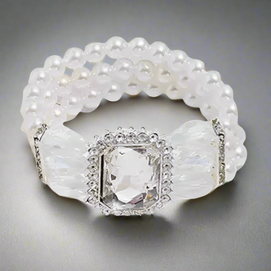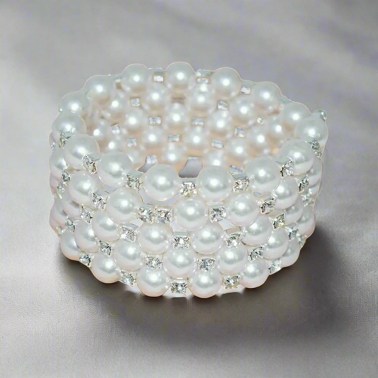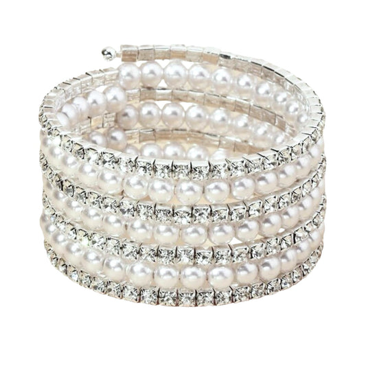 Pearls Rhinestones 7 Row Flexible Bracelet