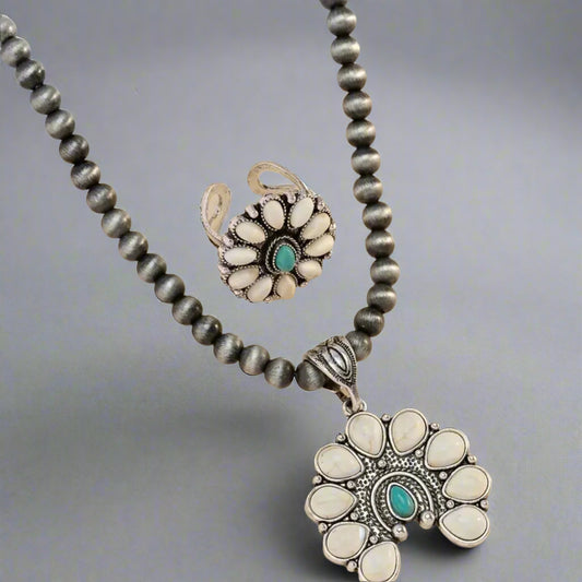 Turquoise White Beaded Necklace