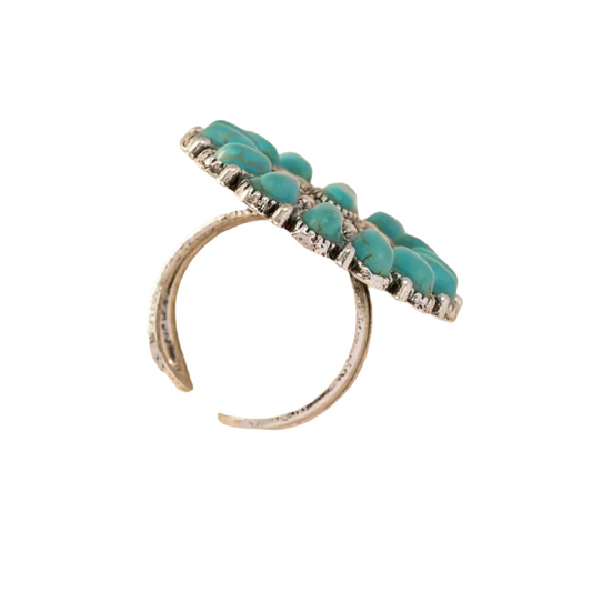 White Turquoise Silver Rectangular Ring