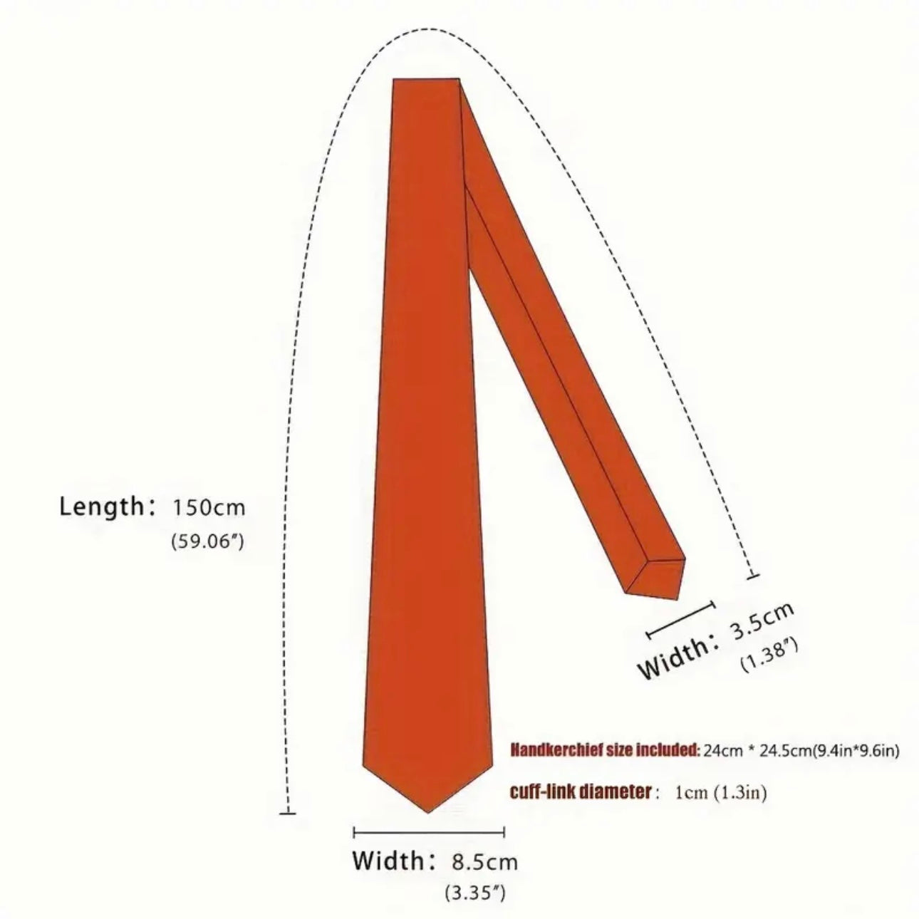 Jacquard necktie set comes with matching cufflinks and pocket square.