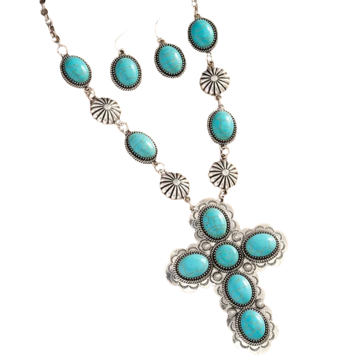Blue turquoise necklace and earrings set is a lovely set appropriate for any occasion. Perfect size to go with everything.