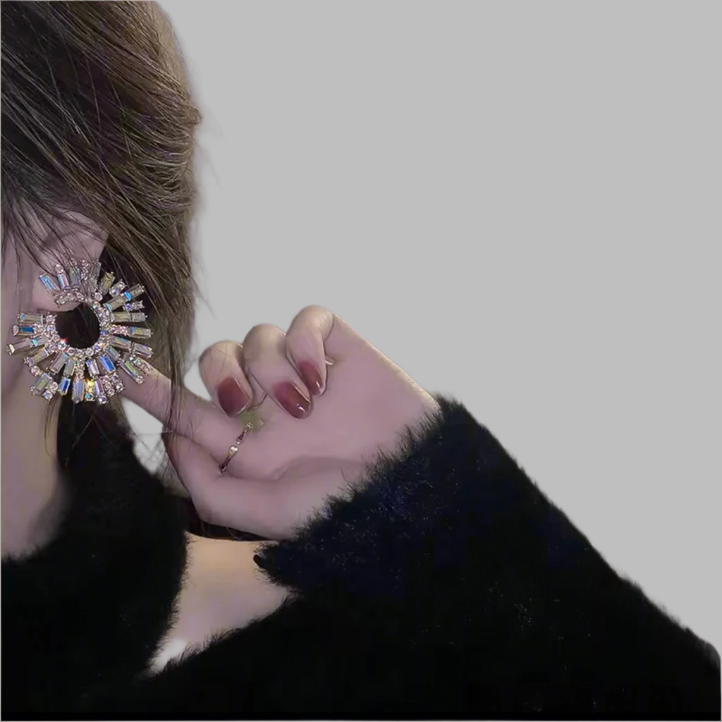 Iridescent geometric pierced earrings will make a statement with anything you are wearing.