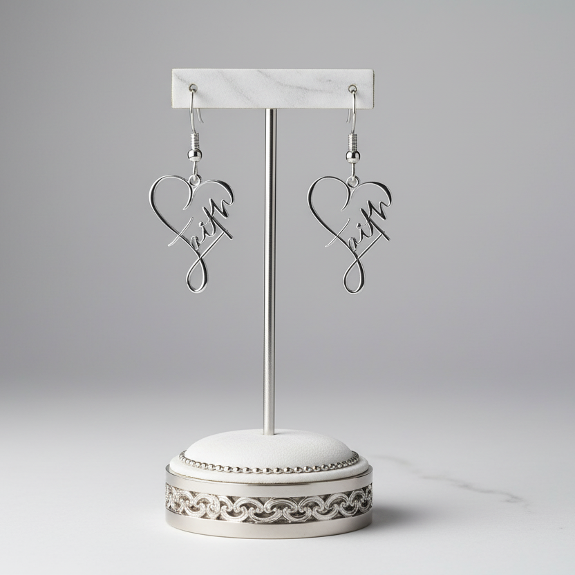 Faith Stainless Steel Heart Earrings