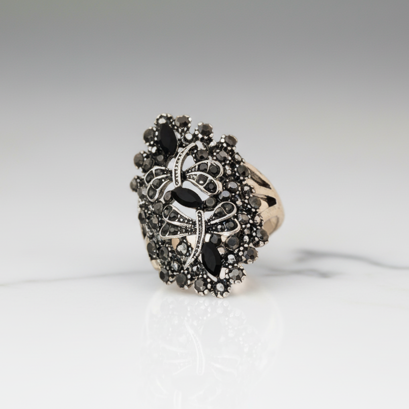 Black rhinestone design all-fit ring is gorgeous. This ring can be a statement piece or a complementary piece depending on your preference.