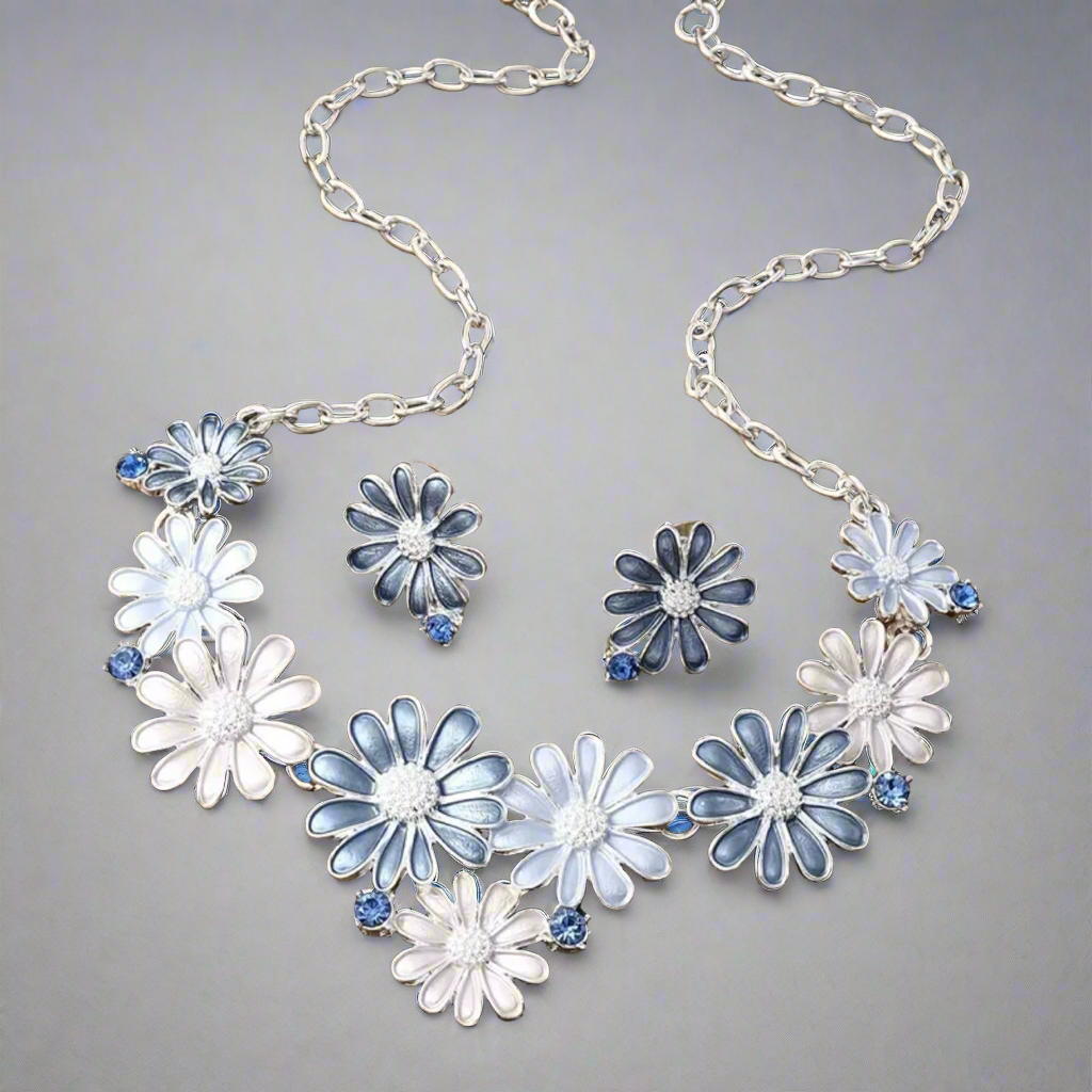 Metallic shades of blues and whites blend beautifully for a versatile jewelry set.