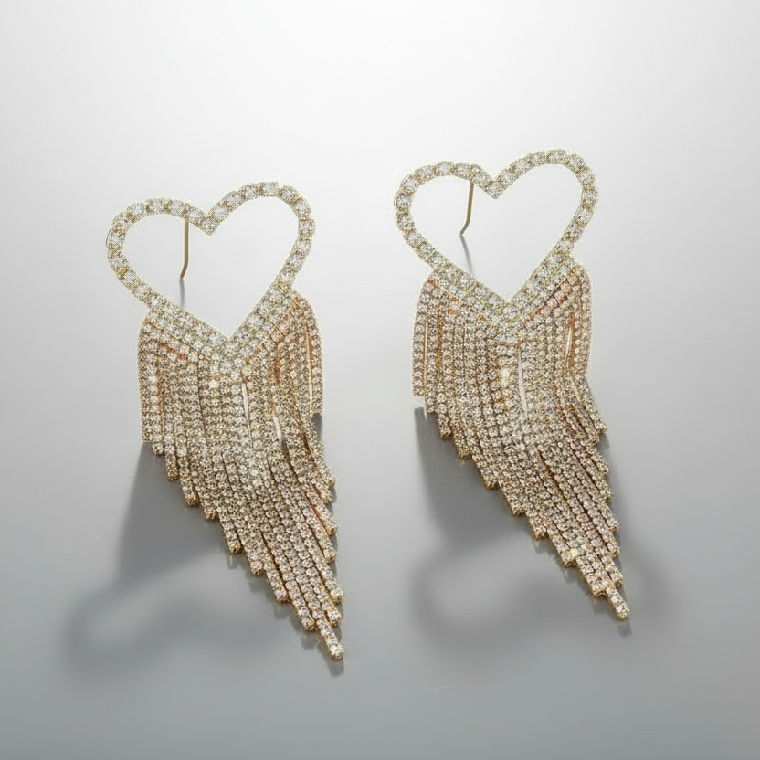 Golden Heart Tassel Earrings