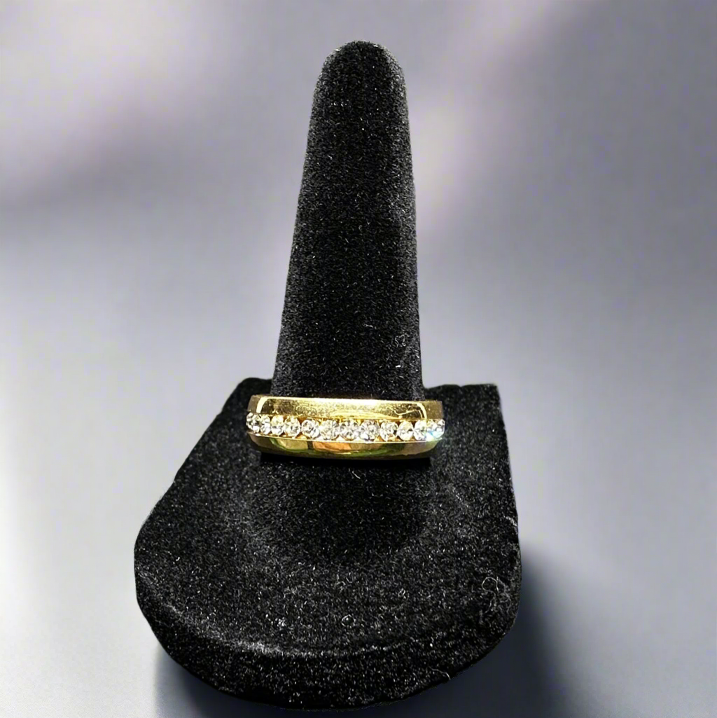 Rhinestones add a touch of elegance to this band that comes in black, silver tone, or gold tone.