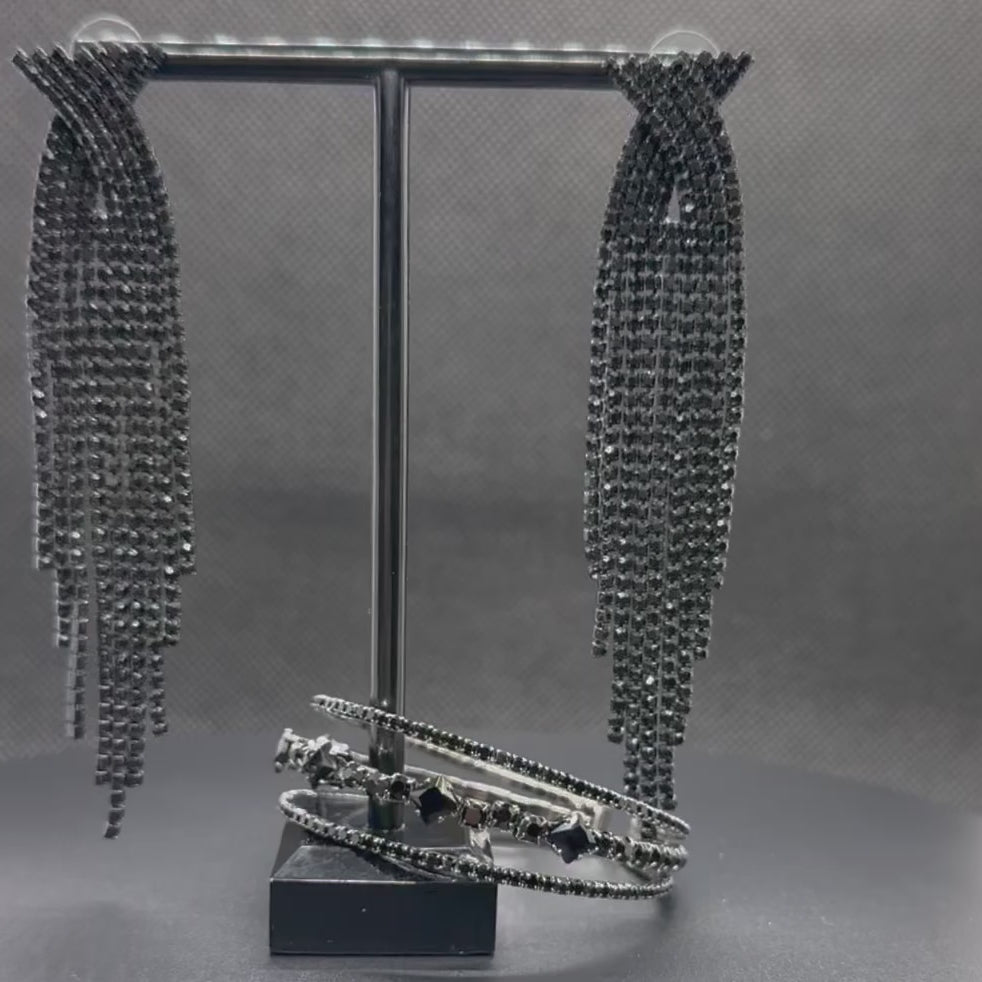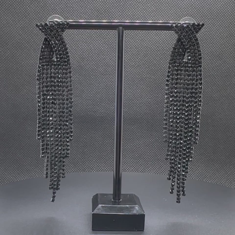 These elegant tassel earrings have a gorgeous extra detail at the top setting them apart from other styles. Black rhinestones are also highly reflective.