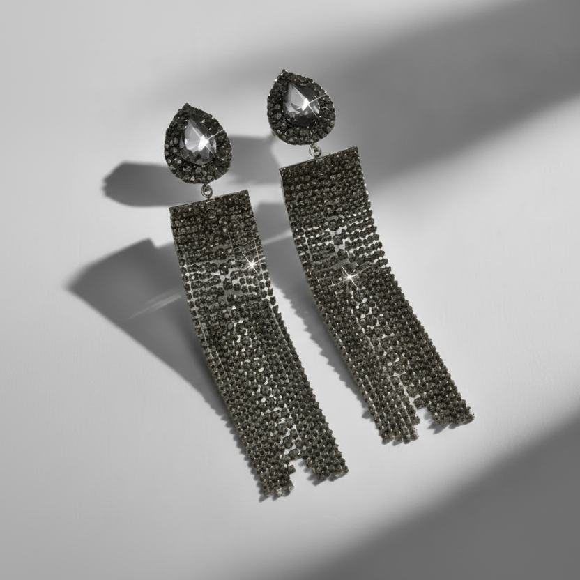 Make a glamorous statement with these exaggerated sparkling tassels.