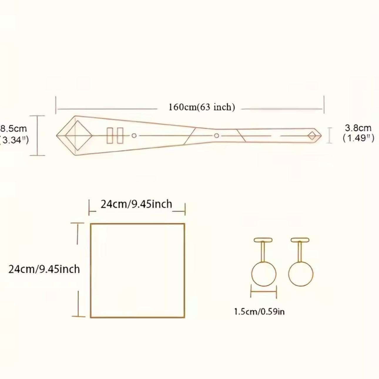 This long necktie set comes with necktie, cufflinks, pocket square, gold tone tie chain and silver tone tie clip. Tie clip may be different from the one in the photo.