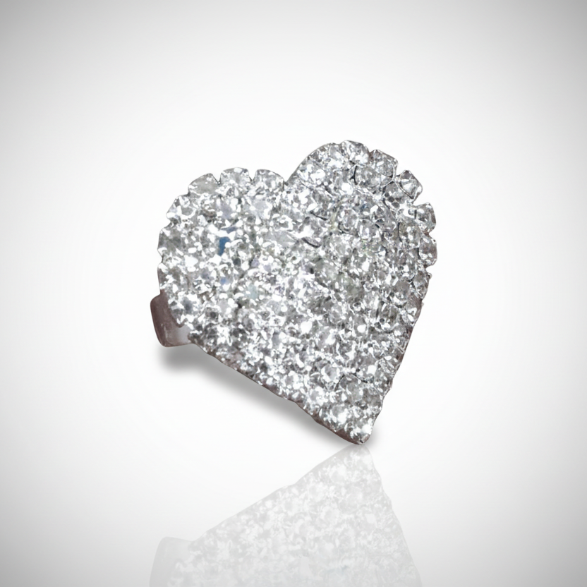 This All-Fit Ring has a large trendy heart on top of a silver tone band.