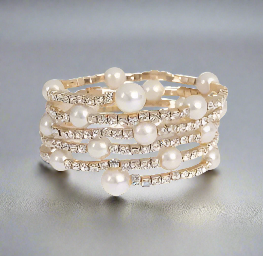 Layers of sparkling rhinestones with white faux pearls sprinkled throughout.