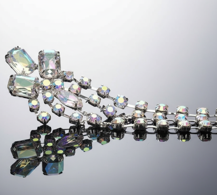 Large iridescent tassel earrings will make a statement with anything you are wearing.
