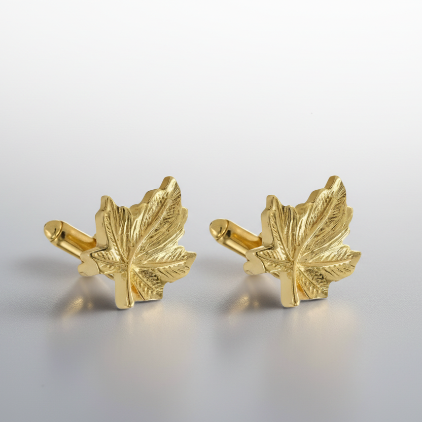 Gold tone maple leaf cufflinks are appropriate for any occasion.