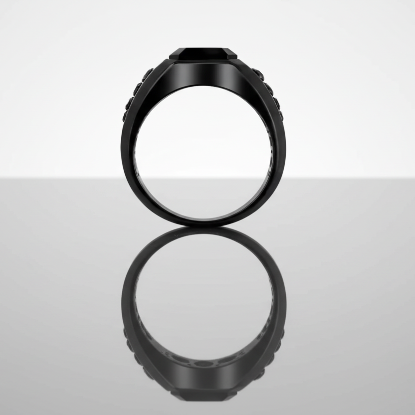 Black cubic zirconia gives this ring a bling factor and adds to it's big presence. If you are looking for a large ring to make a statement, this is the one for you.
