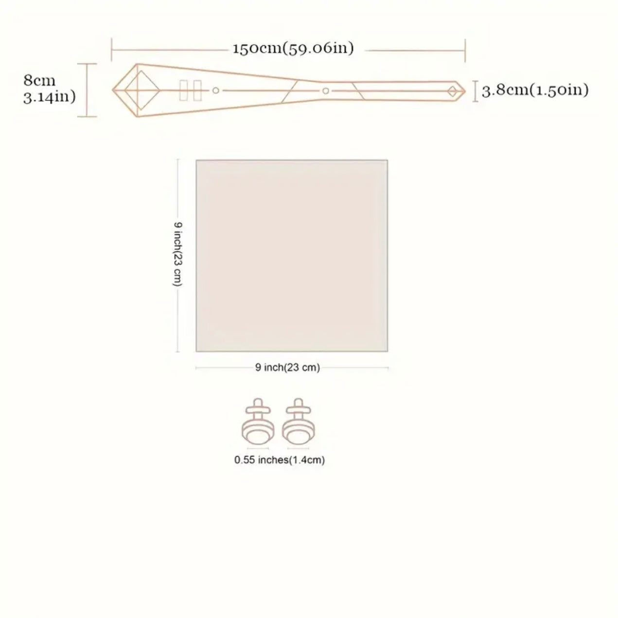 - Pocket square 9”x9”.