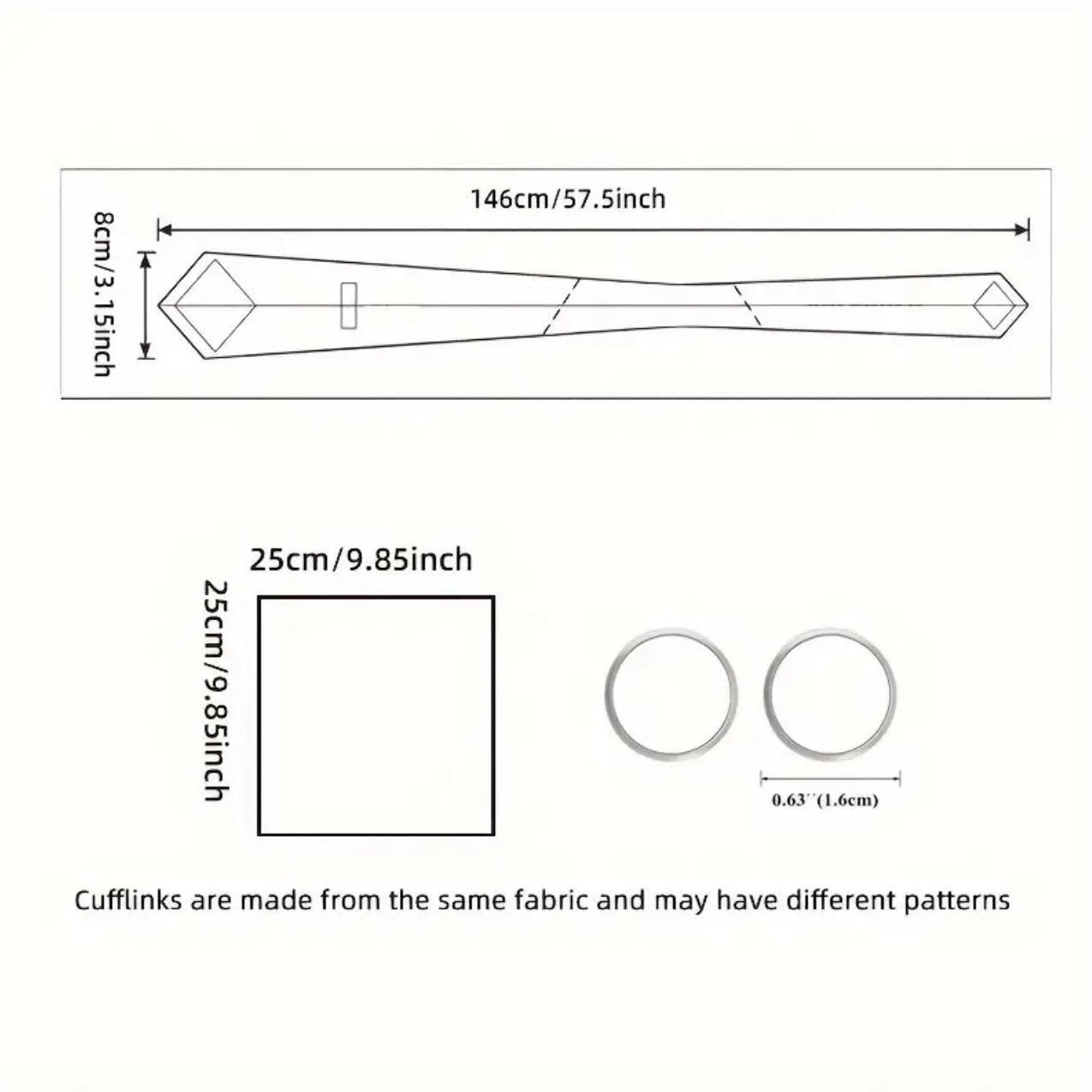 This beautiful set comes with necktie, pocket square, and cufflinks.