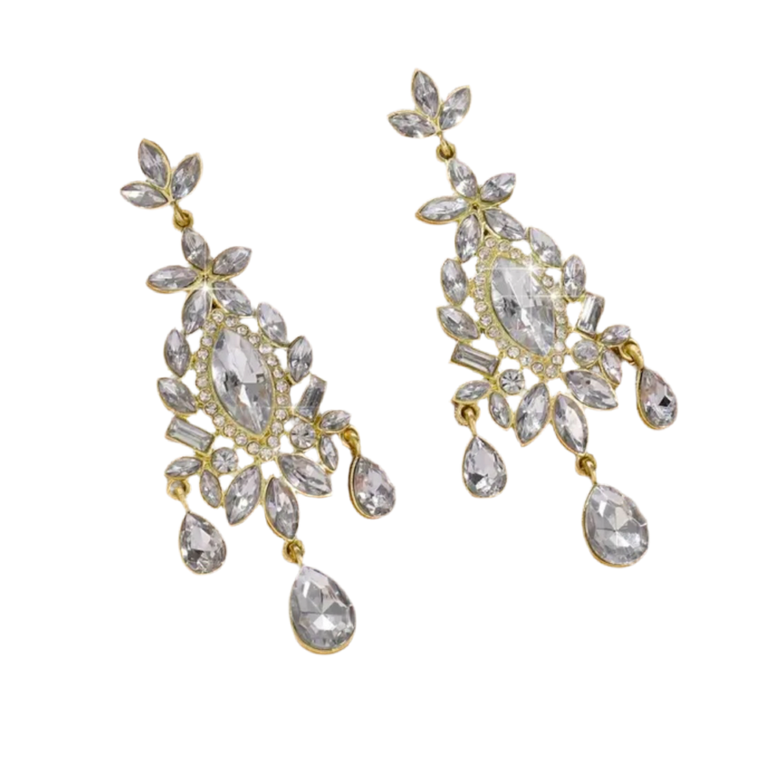 Sparkling rhinestones in a gold tone setting are beautifully designed in an unusual and flattering design.