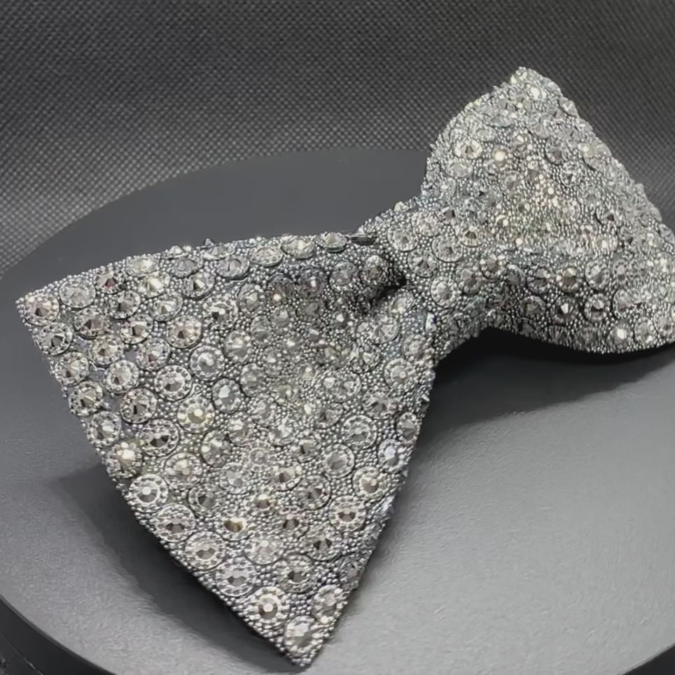 Grey Silver Beaded Bowtie