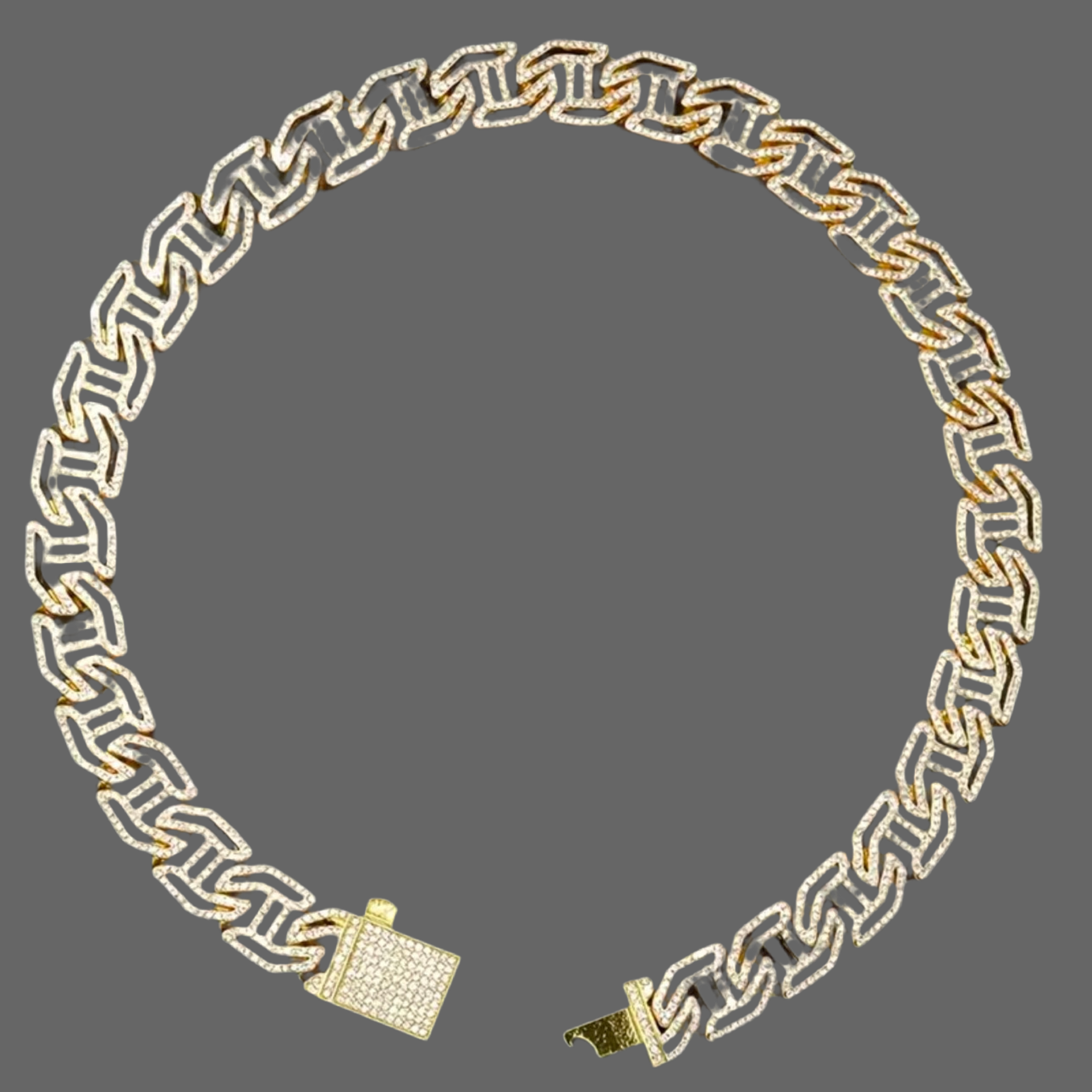 Extra drip in this Cuban Chain link necklace in silver tone with clear rhinestones.