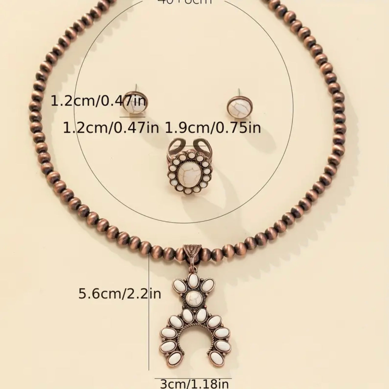 White turquoise with red bronze plated set is beautiful and versatile.