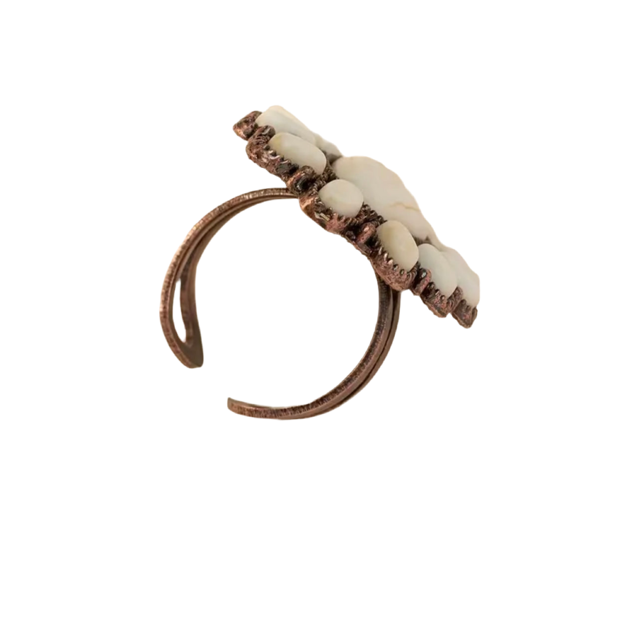 White/cream inlaid turquoise in gorgeous red bronze shows your personality and brings a boho vibe.