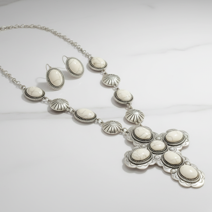 White turquoise necklace and earrings set is a lovely set appropriate for any occasion. Perfect size to go with everything.